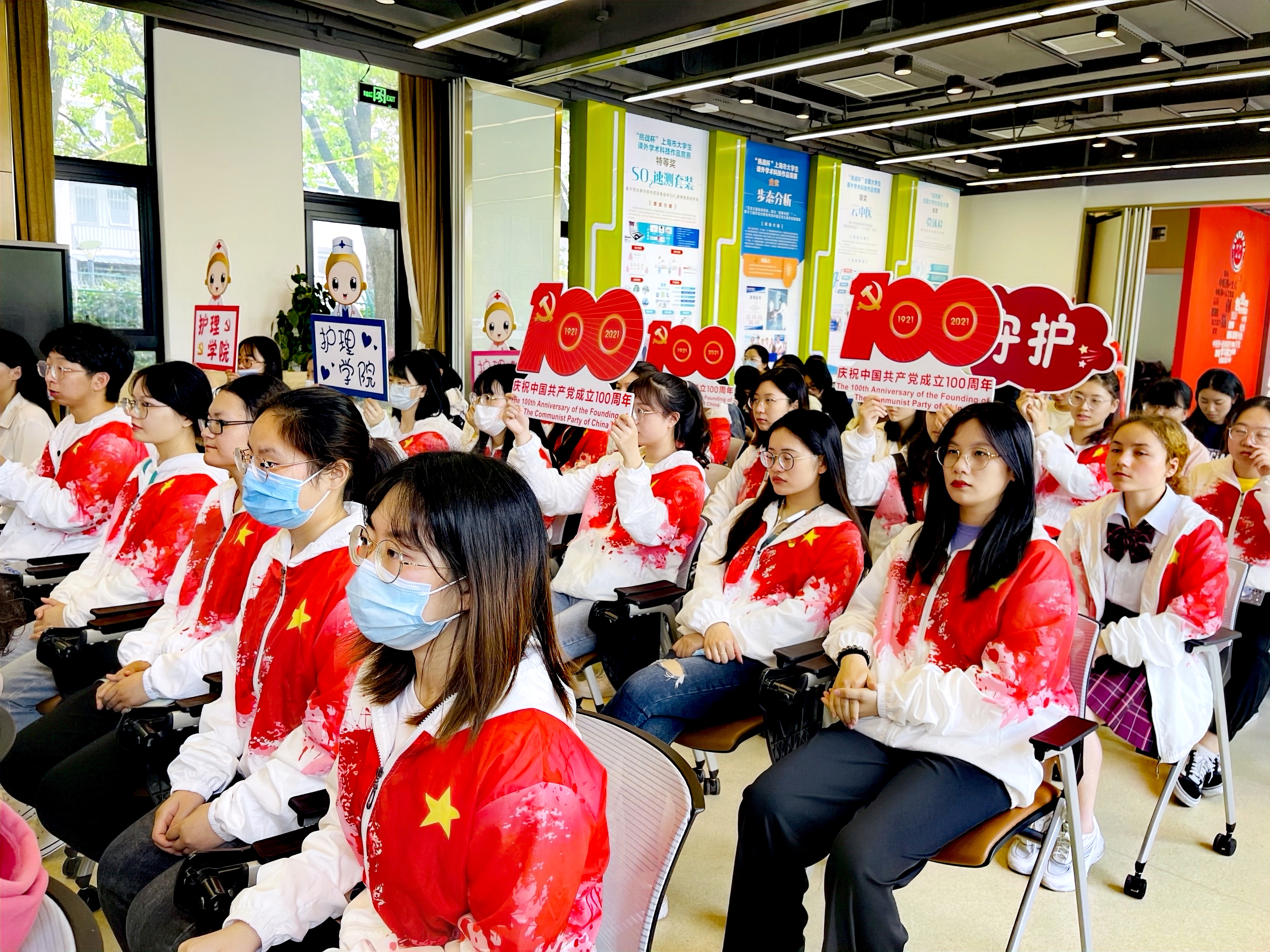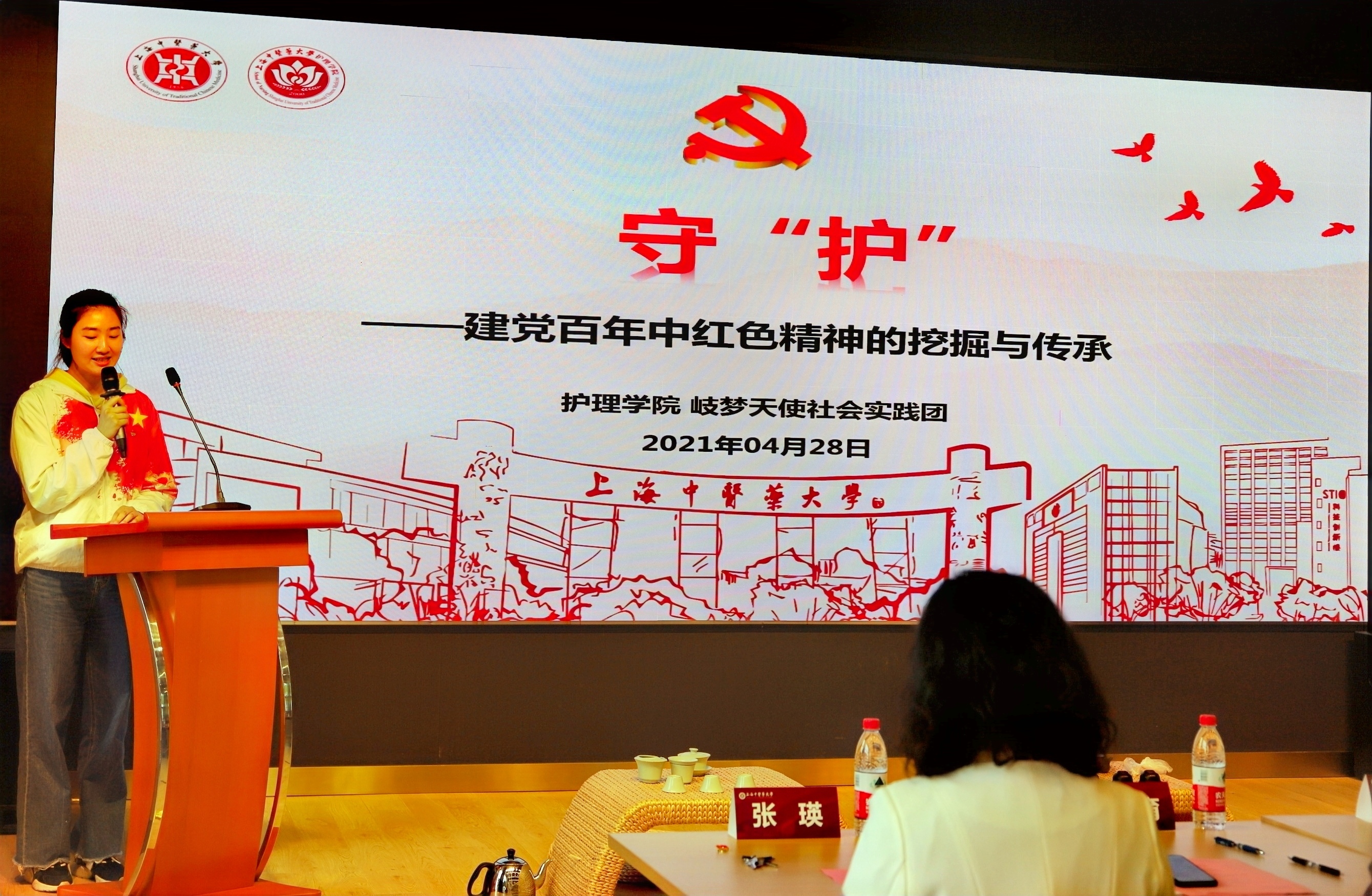曙光医院心内科护士长、上海市优秀共产党员黄凤结合抗疫经历为与会人员带来了一场“别样”情景党课,由护理学院学生党员组成的“申小护”红色宣讲团以《守“护”》为题进行了社会实践项目成果展示,通过讲述建党百年以来优秀护理人的红色事迹,弘扬先进典型,掀起党员学习的热潮。双方党支部积极组织开展联合党史学习教育主题党日及专题交流等活动,并邀请曙光医院全国三八红旗手卢根娣、上海市优秀共产党员黄凤及全国优秀共青团员朱吉成等优秀护理工作者录制抗疫系列微党课,感召更多的护理人及护理学子汲取护理红色力量,不忘初心、牢记使命,为新时代全民健康保驾护航。