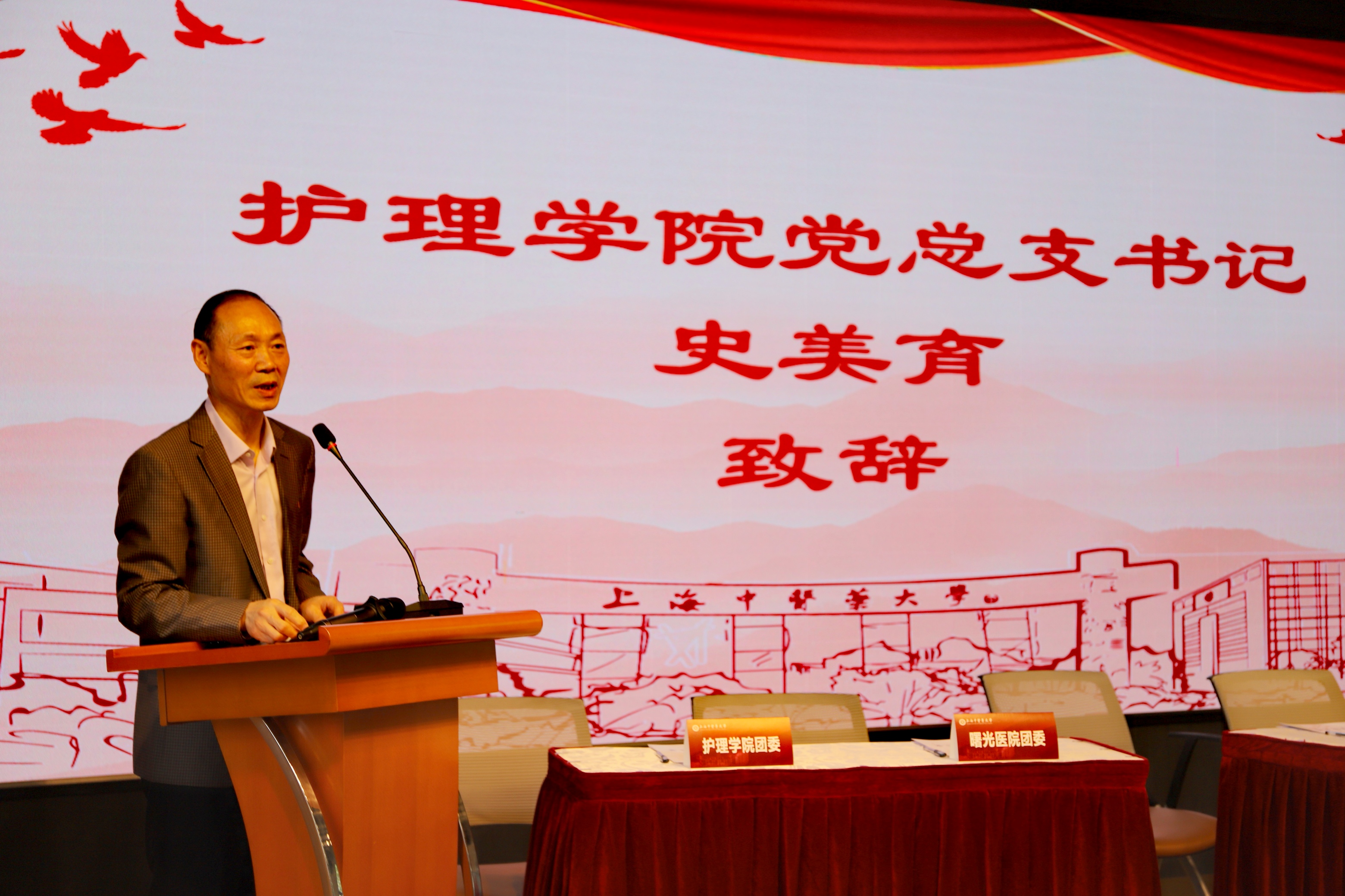 史美育在致辞中提出,在庆祝建党百年之际,护理学院和曙光医院党团共建,充分发挥党建引领作用,院院协同,砥砺奋进,共同落实立德树人根本任务。