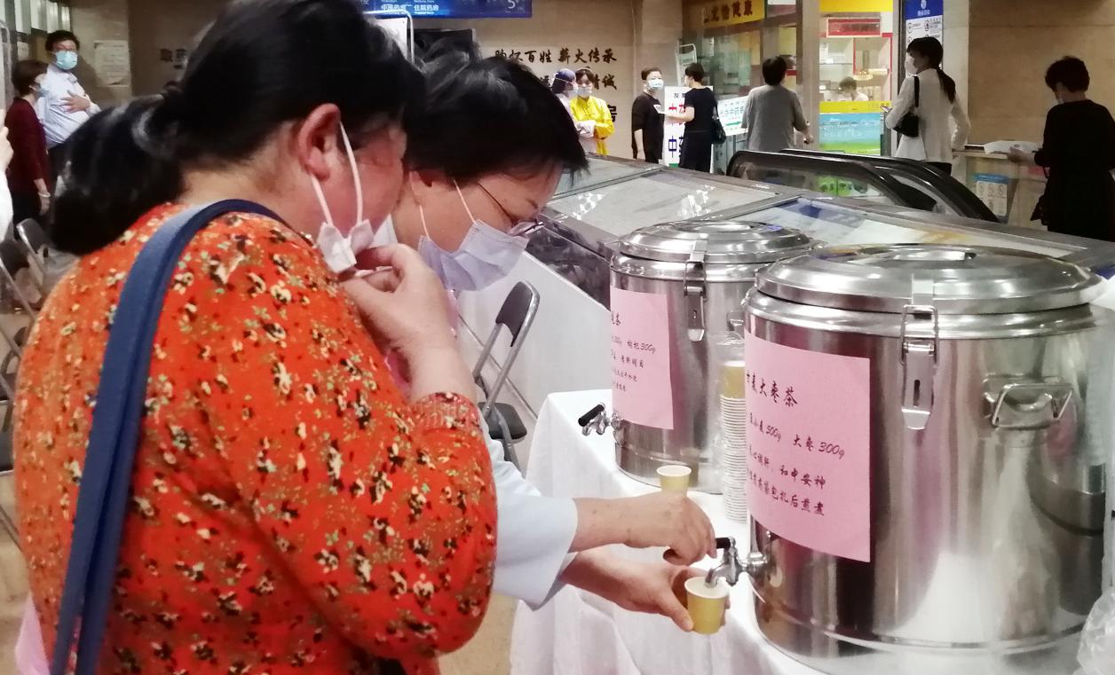 在活动现场,护士们还为市民们准备了中医药文创产品和养生茶。夏日乘凉,手中少不了一把凉扇,将相关健康知识附于养生扇,让人民群众随时了解中医知识。将中药研碎,制成浓郁香味、具养生作用的香囊包,让人民群众感受古韵,惠健康。护士们还向市民提供口味、功效多样的养生茶,将中医相关知识应用于生活中,提高民众健康素养。