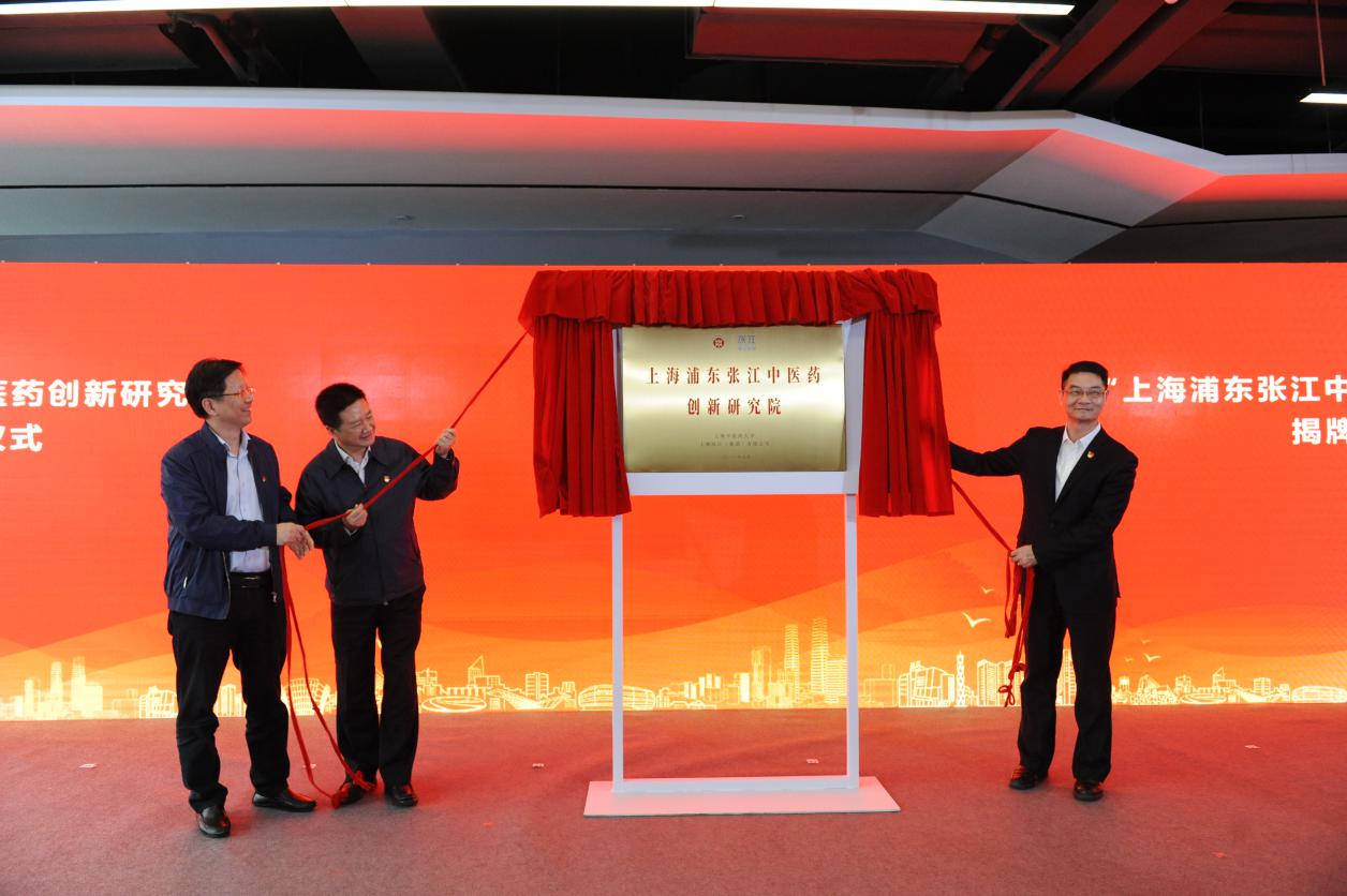 随后,上海浦东张江中医药创新研究院揭牌仪式举行。上海浦东张江中医药创新研究院在区科经委指导支持下,由bat365官网和张江集团共同发起设立。范金成,bat365官网副校长杨永清与张江集团副总经理、上海国际医学园区集团有限公司董事长王凯荣作为三方代表为研究院揭牌。通过该平台建设,bat365中文官方网站、张江集团将发挥双方优势,促进中医药产学研合作,开展中医药管理机制和科研能力创新、技术产品研发、科研成果转化等工作,丰富张江生命健康产业生态,助力世界一流张江科学城建设,推动中医药创新资源转化释放,加快上海中医药事业发展。