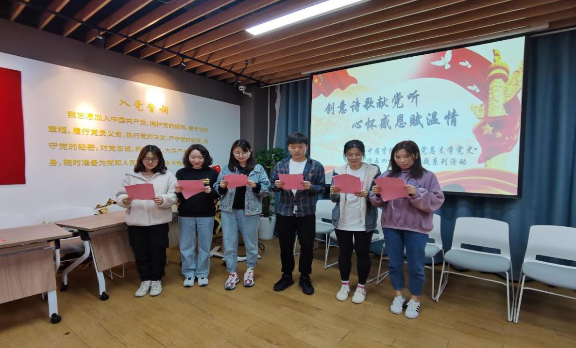 中药学院研究生党总支一直注重加强党员的理论学习和教育,在思想上不断夯实思想政治根基,铸造思想政治之魂,在行动上引领支部党员组织和参与各类丰富的活动,深入学生生活园区、深入附近社区以及藏区,服务各类有需要的人群。在建党百年之际,研究生党总支策划并组织系列专题,结合研究生党员自身的经历、所见所闻所想进而创作的诗歌。通知发布后不到一周时间内,党总支就收到近40首由研究生自己创作的诗歌,学生们以诗言志、以诗述情,一首首原创诗歌讲述了中国共产党风雨兼程一百年的辉煌历史,也充分体现了同学们学习党史的激情与热情,表达了对党百年华诞真挚的礼赞和深深的祝福。