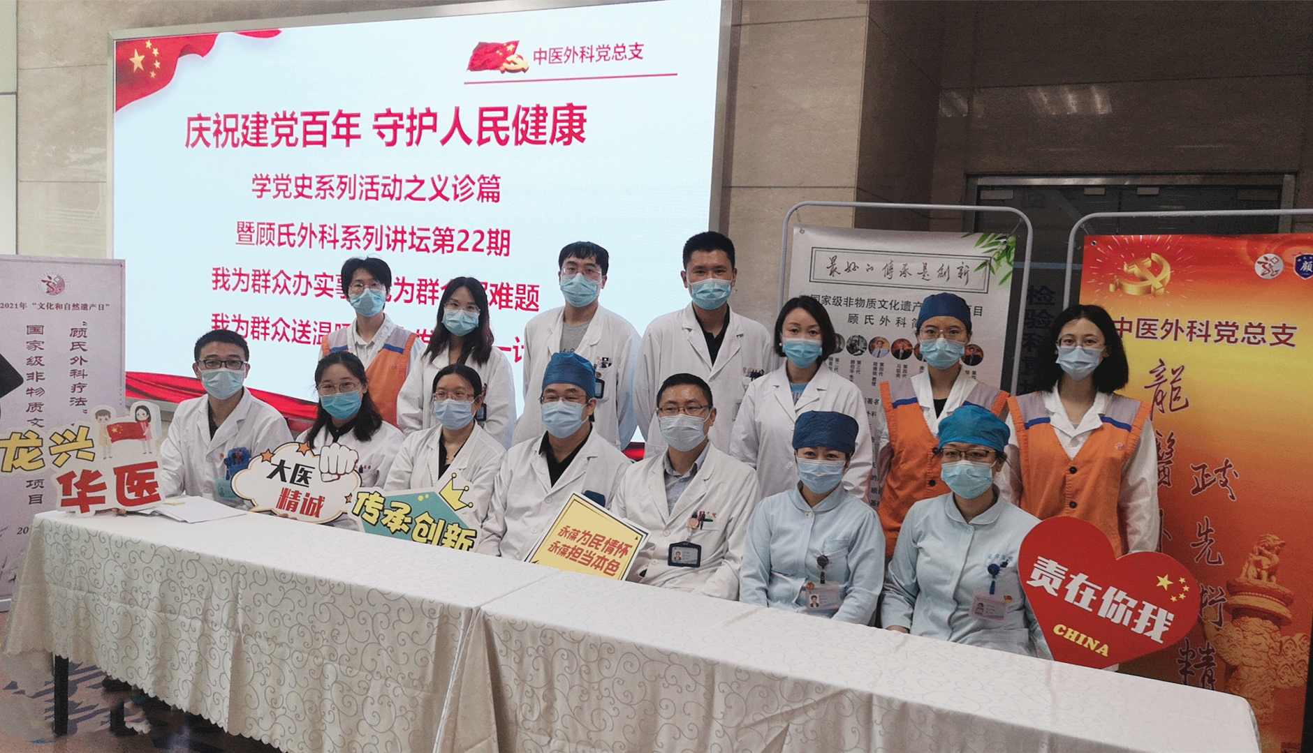 为了更好弘扬中医药传统文化,让广大老百姓深入了解国家级非物质文化遗产代表性项目“顾氏外科疗法”,值此第5个“文化和自然遗产日”来临之际,6月10日上午,附属龙华医院顾氏外科所在中医外科党总支组织开展以“庆祝建党百年,传承顾氏外科疗法,传播弘扬海派文化,守护人民健康”为主题的健康咨询活动。