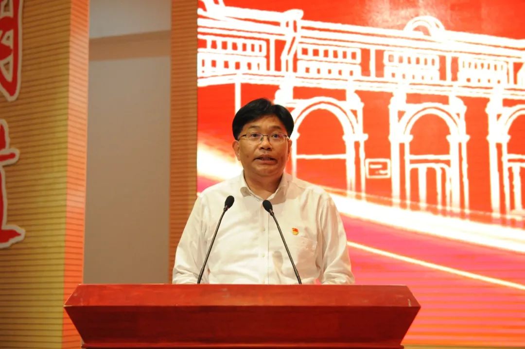 校党委书记曹锡康发表讲话。他指出,一百年来,我们党团结带领全国各族人民经历血雨腥风的革命、艰苦卓绝的建设、波澜壮阔的改革,取得了举世瞩目的光辉成就。学校成立65年来,始终初心不改,始终坚持党的领导、坚持立德树人、坚持传承创新、坚持特色发展、坚持育人为本,取得了丰硕的发展成果。