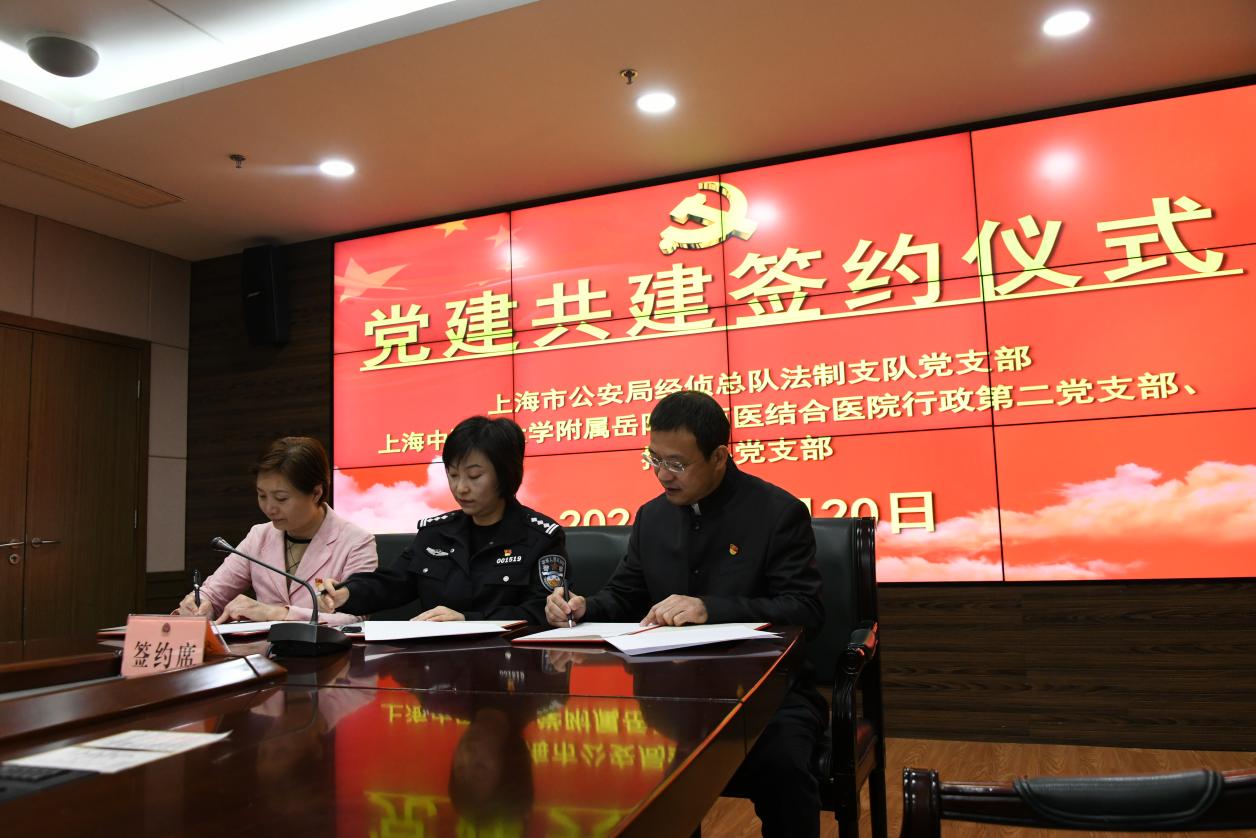 近日,附属岳阳中西医结合医院行政第二党支部、推拿党支部与上海市公安局经侦总队法制支队党支部举行党建共建签约仪式。医院行政第二党支部书记张殷华、推拿科党支部书记孙武权,上海市公安局经侦总队法制支队党支部政委郁翀雯及双方党员代表参加。