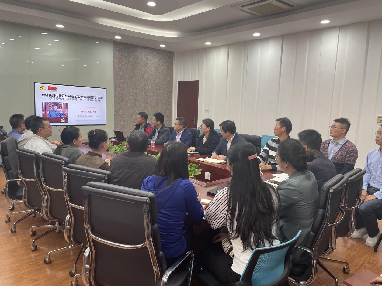 为推进党史学习教育往深里走、往实里走、往心里走,11月3日,针灸推拿学院党总支组织全体教职工在9421会议室开展政治理论学习,认真学习bat365官网马克思主义学院陈荣武教授题为《奋进新时代走好新征程的政治宣言和行动纲领——学习领会习近平总书记“七一”重要讲话精神》的报告。学习会由针灸推拿学院党总支书记陈秋生主持。