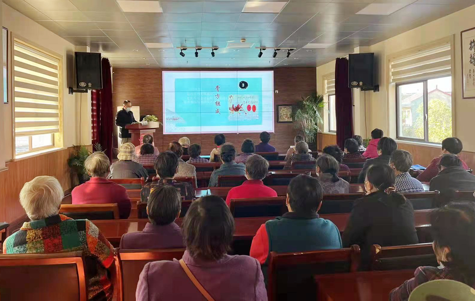 民进龙华医院支部副主委、附属龙华医院脾胃病科副主任医师李凯为四团镇社区卫生服务中心附近的老年人带来“冬令进补话膏方”科普讲座。李凯介绍了冬令进补的意义,从膏方的组成、功效、适用人群及注意点,带领群众更好地认识和了解“何为膏方”。