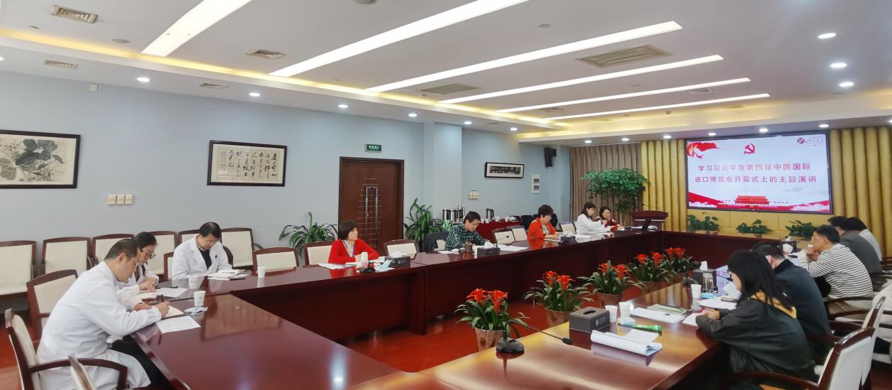 学习会上,医院党委副书记、院长周华带领大家导读习近平总书记在第四届中国国际进口博览会开幕式上题为《让开放的春风温暖世界》的主旨演讲。中国克服新冠肺炎疫情影响,推动对外贸易创新发展,是去年全球唯一实现货物贸易正增长的主要经济体,为保障全球产业链供应链稳定、推动世界经济复苏作出了重要贡献。今年是中国加入世界贸易组织20周年。20年来,中国全面履行入世承诺,用实际行动践行承诺、展现担当。“见出以知入,观往以知来。”一个国家、一个民族要振兴,就必须在历史前进的逻辑中前进、在时代发展的潮流中发展。中国将坚定不移维护真正的多边主义;坚定不移同世界共享市场机遇;坚定不移推动高水平开放;坚定不移维护世界共同利益,推动经济全球化朝着更加开放、包容、普惠、平衡、共赢的方向发展。