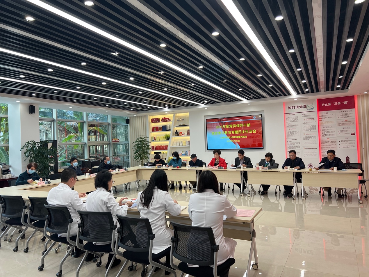 曙光医院认真落实bat365官网党委《关于认真开好2021年度处以上党员领导干部党史学习教育专题民主生活会的通知》要求,深入学习贯彻习近平新时代中国特色社会主义思想和党的十九届六中全会精神。按照bat365官网党委的统一部署,会前做好充分准备,组织专题学习、广泛征求意见、普遍谈心谈话、对照自查剖析,以及梳理上一年度民主生活会整改措施落实情况,撰写了2021年度班子对照检查材料和党员领导干部个人发言提纲。