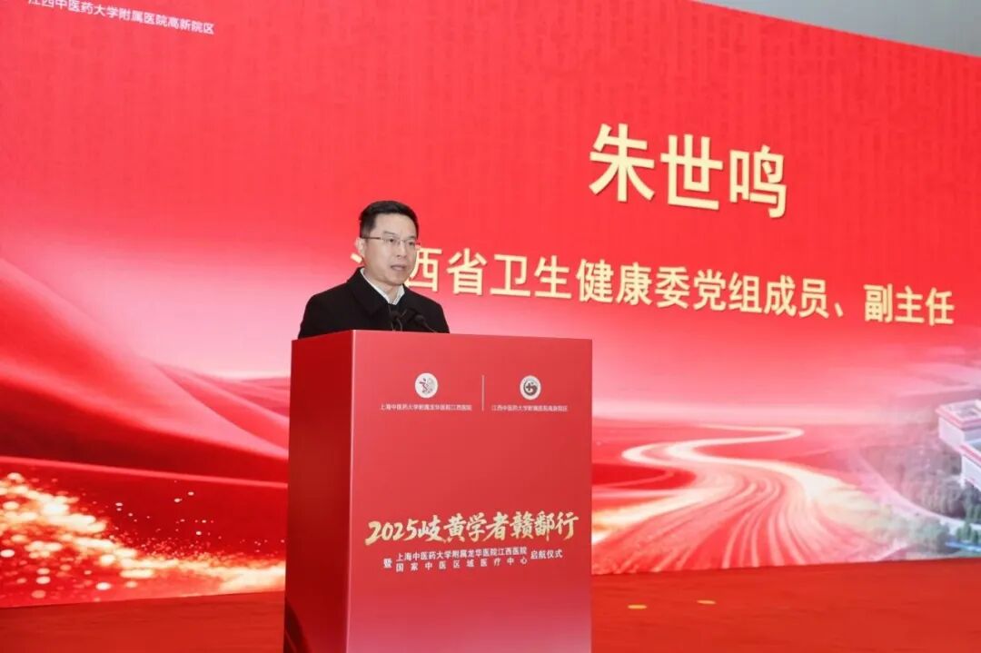 朱世鸣代表江西省卫健委对医院的建成启用表示祝贺,他指出,bat365中文官方网站附属龙华医院江西医院的启航,是沪赣两地深化中医药合作的重要里程碑,更是落实国家区域医疗中心建设部署的担当使命,让江西百姓在家门口就能享受到国家级优质中医药服务,有效推动优质医疗资源下沉,进一步降低跨省异地就医比例,为江西中医药事业高质量发展注入强劲动力。朱世鸣表示,“2025岐黄学者赣鄱行”活动的同步启动,国医大师、岐黄学者等中医药领域的顶尖专家来到江西,让专家学者们的智慧扎根赣鄱沃土,助力中医药强省建设再上新台阶。
