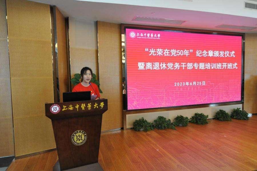 在“光荣在党50年”纪念章颁发仪式暨离退休党务干部专题培训班开班式上,校党委副书记、副校长朱惠蓉出席,党委组织部部长、党校常务副校长王璐主持会议,校原党委书记、退休局级干部党支部书记张建中宣读了荣获“光荣在党50年”纪念章党员名单,朱惠蓉和张建中为七位老党员颁发“光荣在党50年”纪念章。