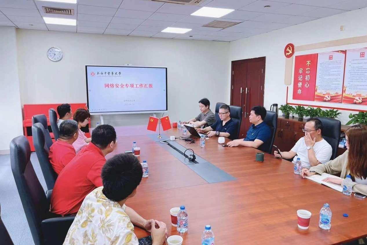消防演练结束后,一行人来到912会议室,网络安全专题交流会举行。学校网络安全专员、信息化办公室网络中心黄克伦作学校网络安全专项工作报告。