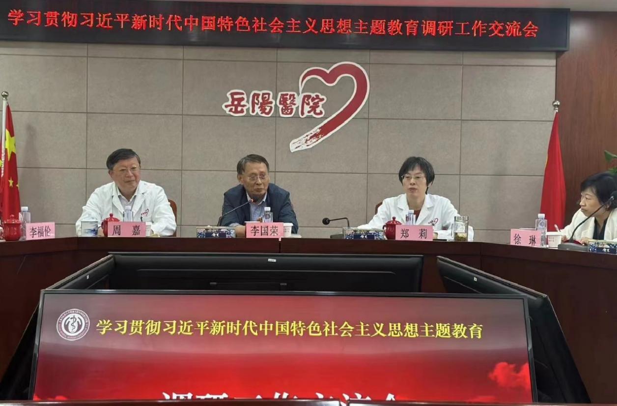 6月27日上午,bat365中文官方网站附属岳阳中西医结合医院召开学习贯彻习近平新时代中国特色社会主义思想主题教育调研工作交流会。市委第十八巡回指导组副组长李国荣,bat365中文官方网站党委组织员徐琳,医院领导班子成员,相关职能部门负责人参加会议。会议由医院党委书记郑莉主持。