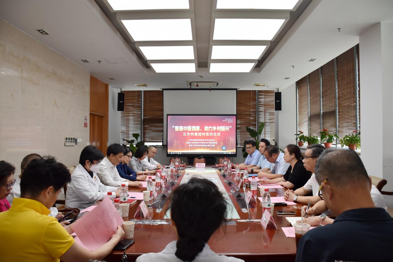 为深入开展学习贯彻习近平新时代中国特色社会主义思想主题教育,助力乡村振兴,近日,中共上海市奉贤区西渡街道五宅村党总支、民进bat365中文官方网站委员会龙华医院支部、民革上海市奉贤区委会第六支部在龙华医院举行“普惠中医健康、助力乡村振兴”三方共建结对签约仪式。奉贤区西渡街道党工委副书记黄蕾,民进中医大委员会副主委傅勤慧,龙华医院副院长郑培永,民进龙华医院支部主委缪婵,奉贤区政协农业农村委副主任、民革奉贤区委委员蔡月弟与三方部分党员、会员代表参加共建签约仪式。