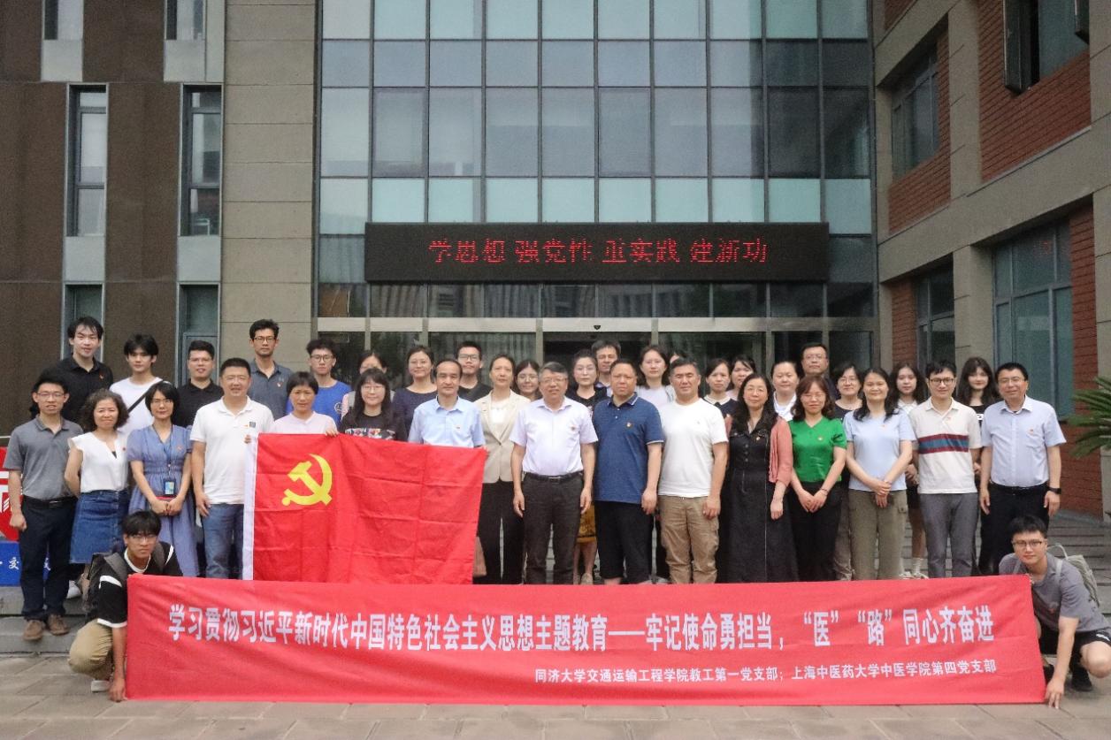 为深入学习贯彻习近平新时代中国特色社会主义思想,bat365官网教育部“双带头人”教师党支部书记工作室——中医学院第四党支部在主题教育期间开展了形式多样的学习教育,引导师生党员坚定理想信念,牢记使命,踔厉奋发、勇毅前行。为进一步拓展视野,了解高校同行在中国式现代化建设中的奋斗史,近日,在支部书记何建成教授带领下,师生30余人赴同济大学嘉定校区,与教育部“双带头人”教师党支部书记工作室——同济大学交通运输工程学院教工第一党支部联合举办“牢记使命勇担当,‘医’‘路’同心齐奋进”主题党日活动。
